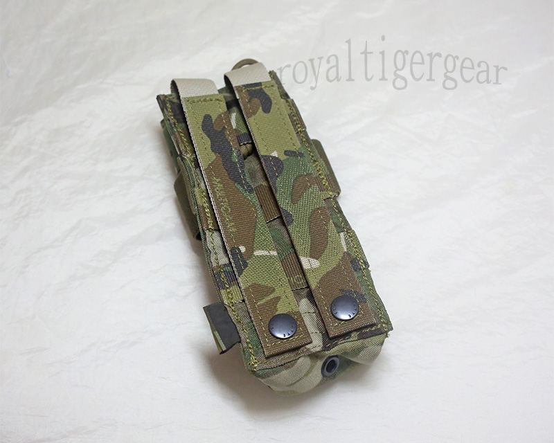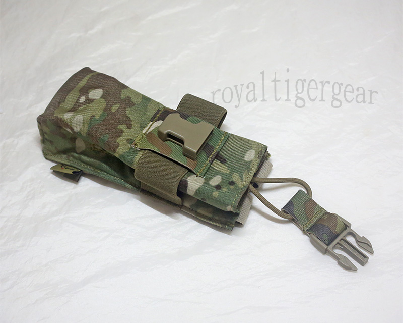 Elastic strip around outside of pouch to ensure a snug, secure fit. - Female pouch clip mounted on webbing for easy field repair.